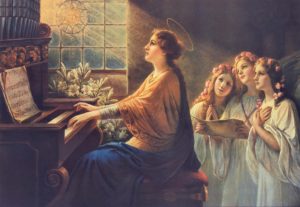 Kính lạy Bà Thánh Cécilia/ Thánh Bổn Mạng là đấng hưởng phước thanh nhàn đời đời,/ chẳng còn lo sợ điều gì nữa,/ một ưu lo trông ước cho tôi đặng hưởng phước như vậy./ Khi Thánh Bổn Mạng còn ở dưới thế,/ thì đã làm việc lành mà dạy dỗ tôi,/ rày đã lên trước mặt Chúa,/ xin dâng lời cầu nguyện mà giúp tôi./ Gương mọi việc lành phước đức Thánh Bổn Mạng,/ đã đủ mà dạy tôi sự gì phải làm cùng sự gì phải kính./ Ví dầu thuở trước Thánh Bổn Mạng cũng là kho thọ sanh như tôi,/ mỏng giòn yếu đuối như tôi,/ và chịu mọi sự khốn khó cùng mọi chước cám dỗ như tôi,/ song bởi Thánh Bổn Mạng vững lòng kính mến Chúa chí thiết,/ nên đã đặng đánh dẹp tam cừu oan gia:/ tà ma,/ thịt mình,/ thế tục;/ xin dắt tôi noi theo mùi thơm tho các nhân đức Thánh Bổn Mạng là quan thầy tôi,/ từ ngày tôi đã chịu phép Rửa tội,/ và nên con cái Đức Chúa Trời,/ thì Chúa liền phú tôi cho Thánh Cécilia gìn giữ bầu chữa tôi./